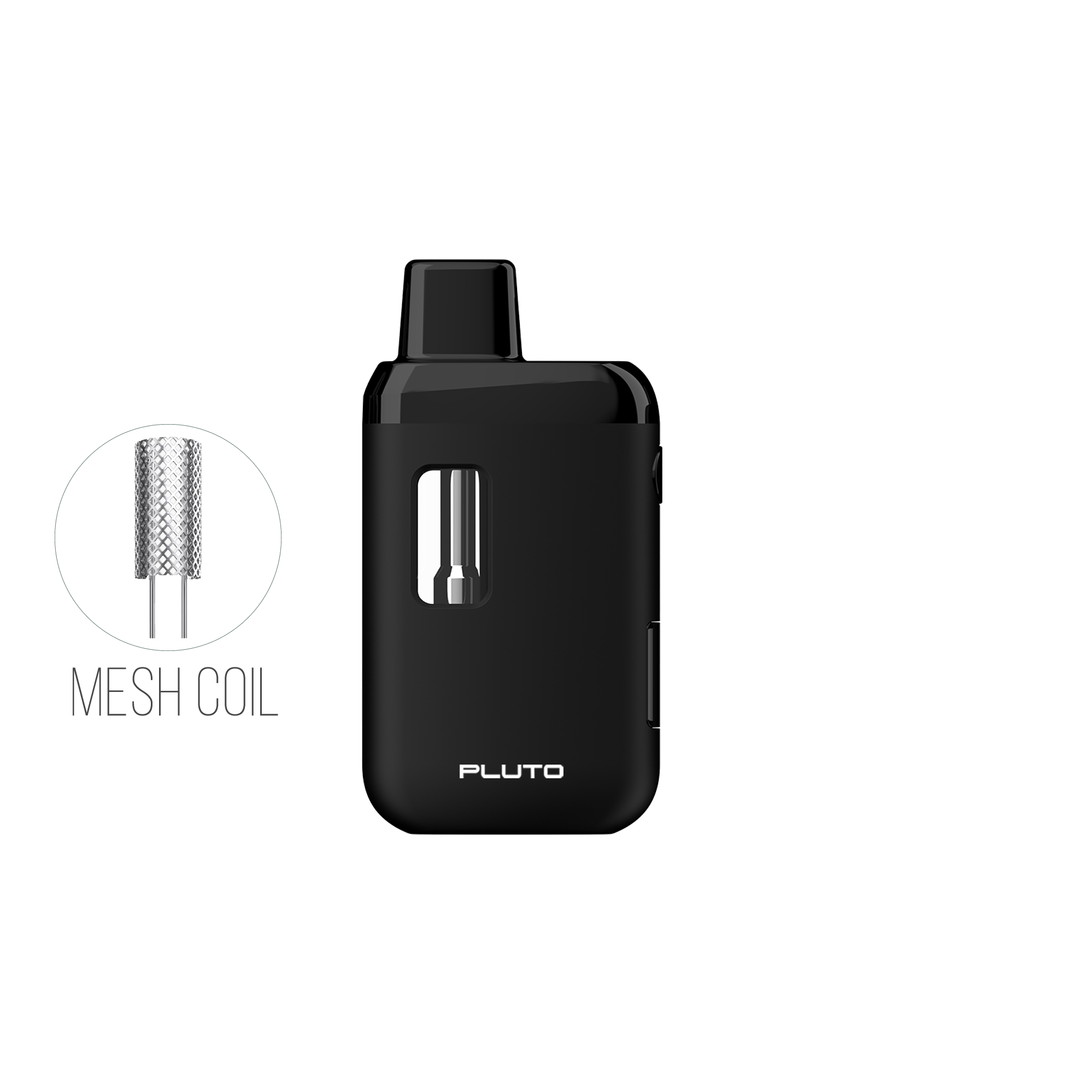 It’s 3ml disposable device with mesh coil for cbd/thc/mushroom juice. It’s with clear window and compact design, and it’s with lcd screen and easy to use it.   What’s included: 100pcs mouth piece part,100 battery device 3ml disposable device protection&Warranty 3ml disposable device is covered for 1year under the pluto warranty